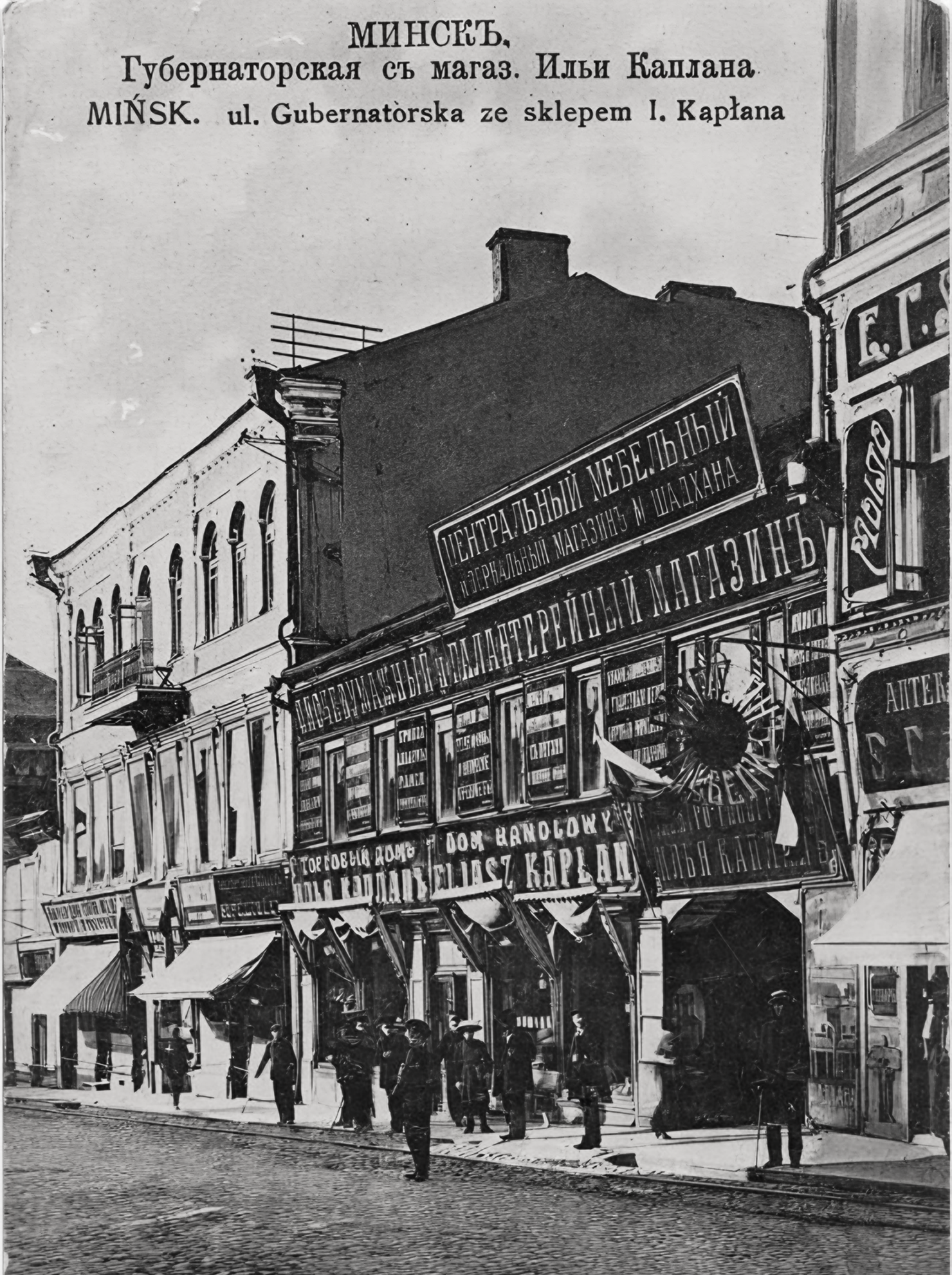 The following photo shows the Rakovshick House, a complex of connected commercial buildings at the corner of Gubernatorskaya and Zacharevskaya Streets.